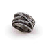 Een 18kt witgouden, zwart gerodineerde, ring van Al Coro. Collectie: Serenata. Brede ring met verschillende over elkaar kruisende draden. Vijf draden bezet met briljant geslepen diamanten, 83=0,94ct H Si.