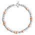 Een zilveren armband kit van het merk Dodo. Rondelle. De kit bevat een zilveren armband met kleinere zilveren ringlets en grotere rosé verguld zilveren ringlets en een zilveren veer sluiting.