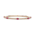 Een 18kt roségouden, rekbare, riviére armband. Bezet met acht ovale robijnen van 4x3mm, 8=1.45ct. Hiertussen briljant geslepen diamanten, totaal 1.00ct.
