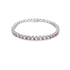 Een 18kt witgouden riviére armband met om en om 42=12,27ct briljant geslepen licht groen granaten en licht roze spinellen. Allen gezet in chatons met ieder vier grieven. Baksluiting met twee veiligeheidsklepje aan de onderzijde.