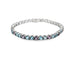 Een 18kt witgouden riviére armband. Bezet met zesentwintig aquamarijnen en dertien lila spinellen, allen ca 4,6mm. Totaal gewicht 39=13,20ct. Ieder gezet in een chaton van draad, met een dubbele baat, en vier grieven. Baksluiting met veiligheidsklepje aan de onderzijde. Lengte 18,5cm.