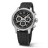 Een ronde 40.5mm stalen kast, een rubberen band met gesp en een automatisch uurwerk met chronograaf functie.