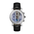 Staal aan lederen band, chronograaf met dag-, datum-,maand- en maanstand, grijs