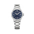 Stalen kast aan stalen band, automatisch uurwerk, blauwe wijzerplaat, briljant lunette