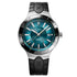 Een ronde 41mm stalen kast, een rubberen band met vouwsluiting, een ceramische lunette en een automatisch uurwerk.