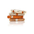 De 18 krt handgemaakte gouden ringen zijn bezet met diamanten en oranje saffieren in de kleur. Kenmerkend is de gouden geëmailleerde ring bij iedere set.