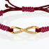 Steltman 'Belle Infinity'armband Large. Het infinity teken is handgemaakt het Steltman Atelier, 18-karaats geel goud, bevestigd aan een gekleurd koord, macramé geknoopt, Verschillende kleuren koord beschikbaar.