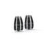 Een paar 18kt witgouden oorknoppen / creolen van het merk Seaman Schepps. Model: Buckle. Drie rond geslepen banen onyx waartussen twee banen diamant. Diamanten verlopend in grote. Clips.
