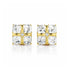 Een paar 18kt geelgouden oorknoppen van het merk Seaman Schepps. Model: Cuad. De oorknoppen zijn bezet met ieder vier kussen geslepen bergkristallen, in ieder drie enkele grieven en één punt onder het midden kruis. In het hart bezet met een briljant geslepen diamant. Clips. Piecenr. 242926.