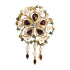 Een pre-owned 800/000 gouden broche/hanger met druppelvormige granaten en geemailleerde bloemen, hieronder 3 slingers met marquise granaten en parels. 1938-1984, 65x46 mm. Gewicht 22 gram.