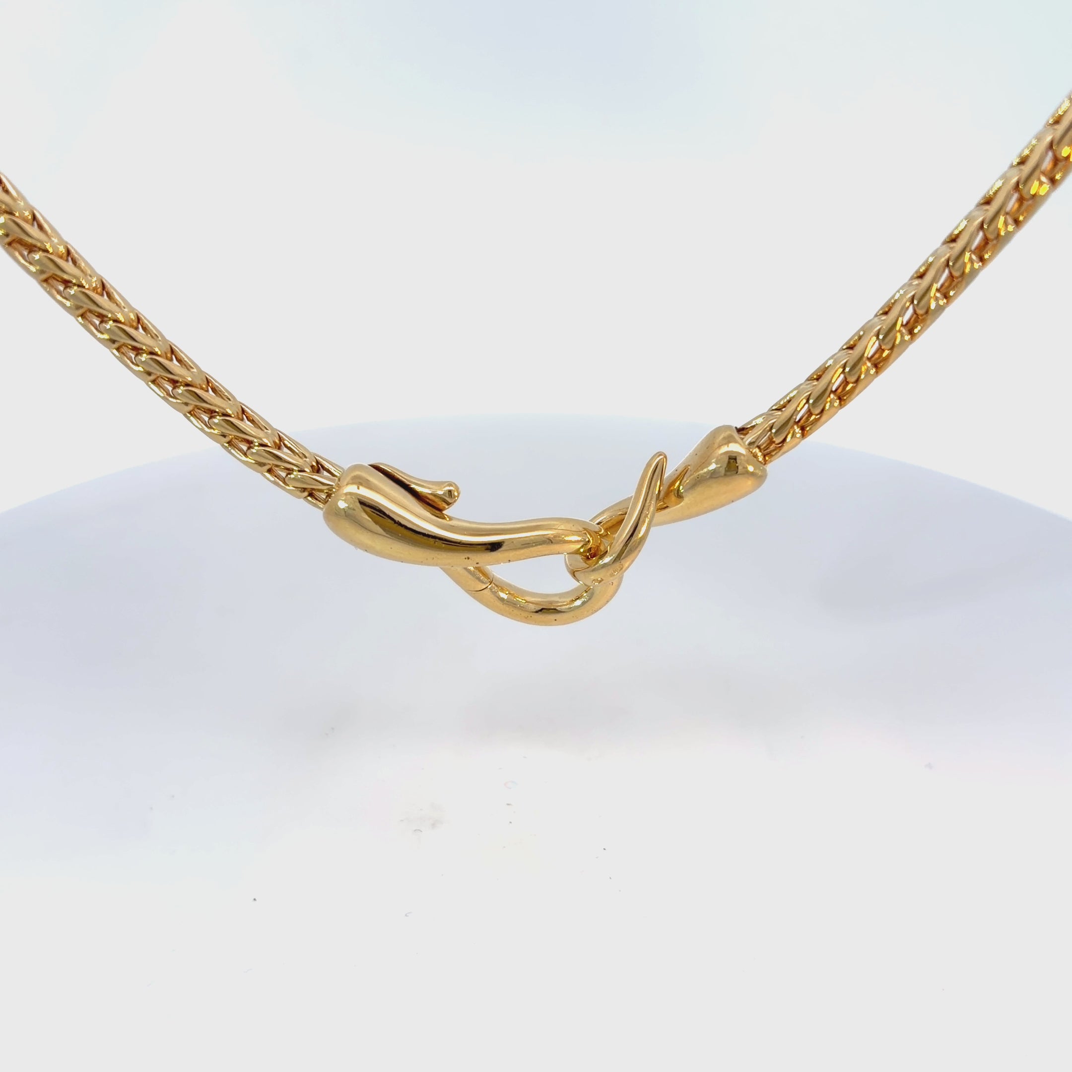 Een pre-owned 18kt geelgouden vossenstaart collier met een grote designsluiting. Lengte 40cm. Totaal 69 gram