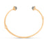 Een 18kt geelgouden bangle van het merk Ole Lynggaard. Collectie: Nature. Gesatineerd, bamboo vorm. Open aan één kant. Einden bezet met een cabochon geslepen grijs maansteen. Maat: 17cm.