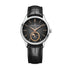 Steel on leather strap, moon phase and date pointer, automatic movement