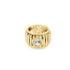Een pre-owned 18kt geel, wit en roségouden pinkring, ringmaat 43, de ring bestaat uit balkjes in geel, wit en roségoud dwars over de ring, bovenop gladom bezet met een diamant van een oud slijpsel, 1=ca 1.20ct H/I-SI.
