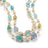 An 18kt yellow gold necklace by Seaman Schepps. Collection / model: Multi Baroque / inner strand. The necklace is made of gold, openwork beads and various gemstones and white freshwater pearls from 8 to 11mm. Stones: Blue topaz 21.50ct, aquamarine 42.90ct, chalcedony 41.09ct, blue topaz 74.70ct, green aquamarine (beryl) 44ct, blue topaz 48.70ct, moonstone 27.45ct, prehnite 24.54ct. Piecenumber 249253.